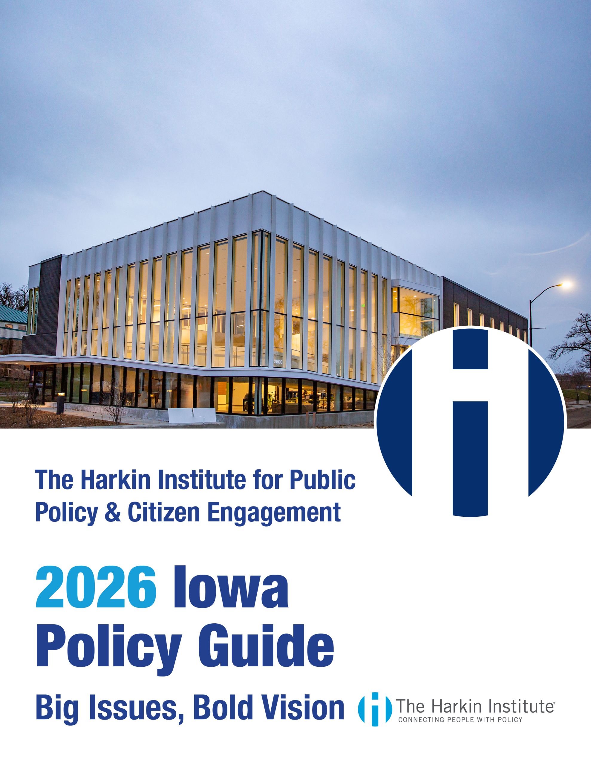 The Iowa Policy Guide highlights areas that the Harkin Institute’s policy researchers have identified as urgent, important, and ready for action. This purpose of this guide is to raise awareness of these issues and provide insights that may be useful to all Iowans, including policymakers and active candidates for municipal, state, and federal offices.